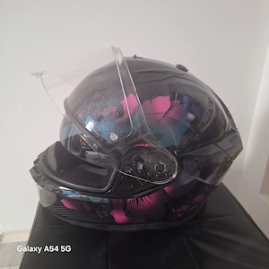 Casca moto full-face, viziera dubla(clear+ fumurie),desin costom(negru+roz albastru),marime S.