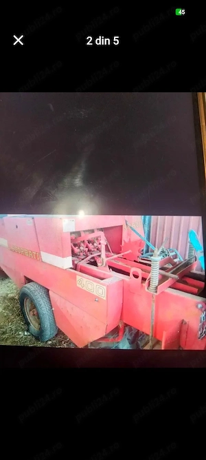 Vând presa baloți Sgorbati 400 mini adusă recent din Italia în stare bună de funcționare ,fără probleme ascunse ținută numai la adăpost ,se poate atașa și la tractorașe mai mici